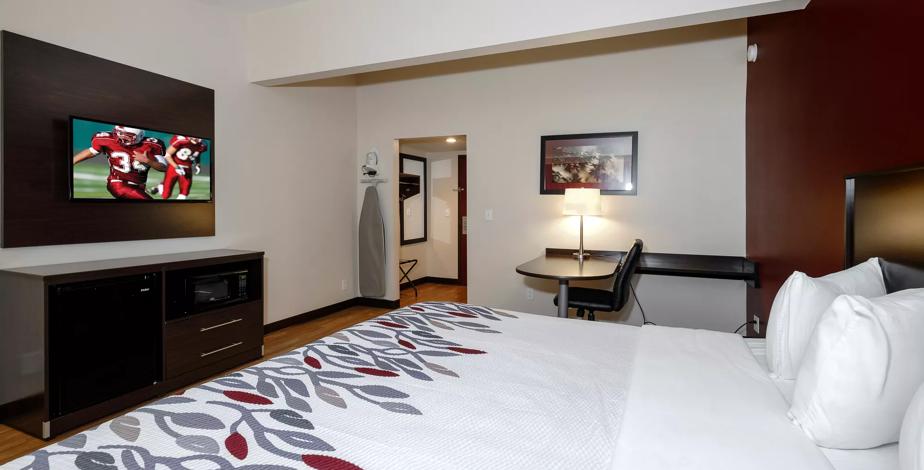 A stay at Red Roof Inn. At Prairie Inn guests have access to free WiFi in public areas free newspapers and laundry facilities. The pool hot tub and sauna were wonderful and even nice patio couches in the pool area where we played cards.